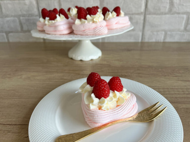 Beza jako wypiek ma długą historię. Początkowo była popularna w kuchni francuskiej, z czasem rozprzestrzeniła się na inne kraje. Nazwa “beza” pochodzi od francuskiego słowa baiser, które oznacza pocałunek. Mówi się, że beza jest tak lekka, że “rozpuszcza się na języku jak pocałunek”. Beza to prawdziwy rarytas, który zachwyca nie tylko smakiem, ale także wyglądem. Jej delikatność i lekkość sprawiają, że jest uwielbiana przez wielu miłośników słodkości na całym świecie. Z okazji święta zakochanych przygotowałam bezowe serca udekorowane kremem śmietankowym i świeżymi malinami. Do przygotowania bezy użyłam dodatkowo odrobiny różowego barwnika w żelu, dzięki czemu serduszka wyszły jeszcze bardziej urocze. Aby beza się udała, należy długo i wytrwale ubijać białka, w innym wypadku beza opadnie i puści “skarmelizowany sok”. Istotny jest także sposób pieczenia bezy, a raczej jej suszenie. Bezę najlepiej piec w temperaturze 90 stopni z włączoną opcją termoobiegu. Czas pieczenia jest dość długi, dzięki czemu beza jest odpowiednio wysuszona i chrupka.