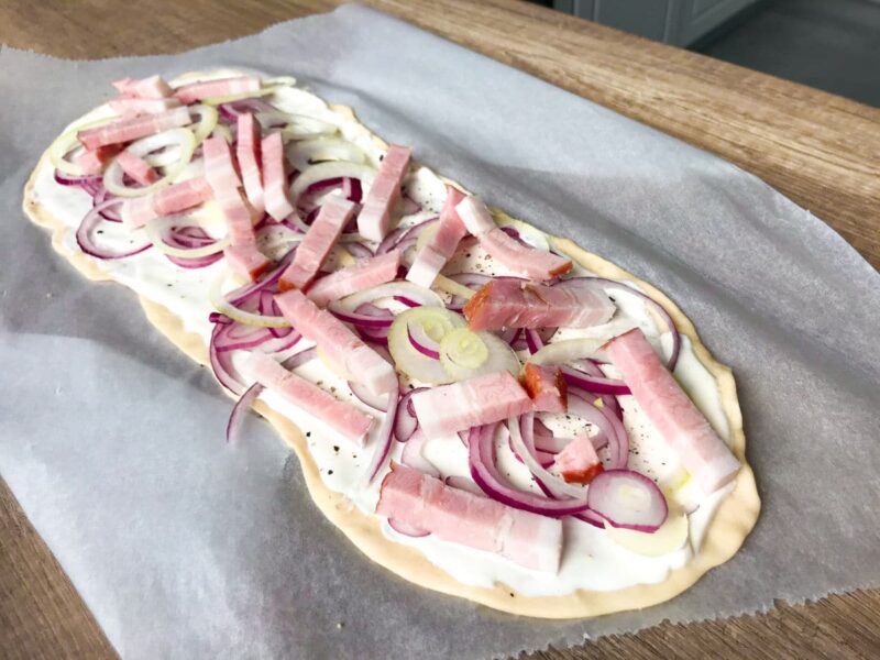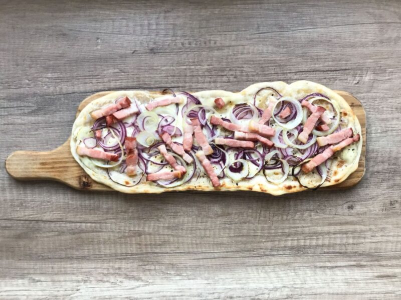 Flammkuchen zwana we Francji tarte flambée, cienka tarta z ciasta chlebowego pochodząca z Alzacji – krainy historycznej położonej w północno – wschodniej części Francji. Tarta wypiekana pierwotnie w kamiennych piecach opalanych drewnem, służących do samodzielnego pieczenia chleba. Przygotowanie alzackiej tarty niegdyś miało za zadanie oszacowanie temperatury panującej wewnątrz pieca, dopiero po tym dostosowywano poziom ciepła do porządanej temperarury odpowiedniej do wypieku chleba.
