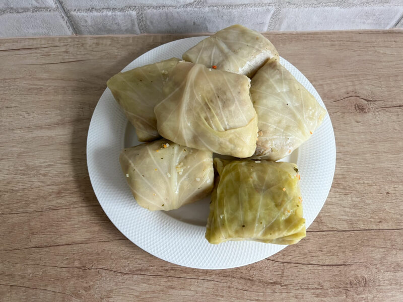 Tradycyjne gołąbki zawijane w białą kapustę. Gołąbki z tego przepisu wychodzą delikatne, kapusta jest bardzo miękka, gołąbki z łatwością się kroją. Według mnie najlepsze gołąbki to te przygotowane z białą kapustą. Biała kapusta jest trudniejsza w oporządzeniu od kapusty włoskiej, jej liście są sztywne i zwarcie przylegają do reszty. Można sobie z tym poradzić gotując kapustę w dużym garze i kolejno delikatnie ściągając przy tym pojedyncze liście. Odpowiednio przygotowane liście kapusty powinny być szkliste i elastyczne, to ułatwi zwijanie gołąbków i zaoszczędzi nerwów. Klasyczny farsz do gołąbków przygotowuję z białego ryżu i mięsa mielonego wieprzowego, w tym celu najlepiej sięgnąć po mięso z łopatki lub karczku. Gotowe, zawinięte gołąbki należy ułożyć ciasno obok siebie w garze, zalać bulionem i gotować przez kolejną godzinę. Dzięki temu gołąbki wyjdą soczyste i miękkie. Do sosu pomidorowego zawsze wykorzystuję bulion spod gotowania gołąbków, ma on dzięki temu najlepszy smak.