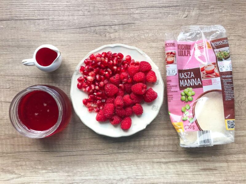 Kaszka manna na mleku z syropem malinowym i owocami