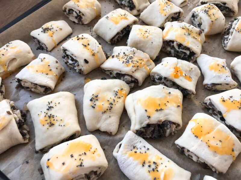 Paszteciki drożdżowe z farszem pieczarkowym z żółtym serem są rozkoszne. Pieczarkowe nadzienie posklejane żółtym serem, który podczas pieczenia przyjemnie się rozpływa wewnątrz wypieku. Całość zamknięta w puszystym cieście drożdżowym. Maleńkie bułeczki mogą posłużyć jako przekąska lub dodatek serwowany razem z czerwonym barszczem, zamiast uszek i polskich pierogów.
