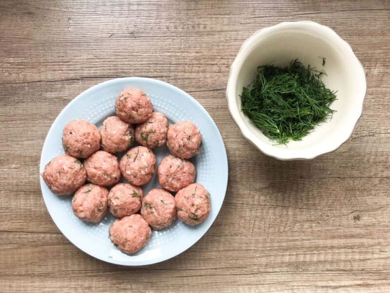 - Z mięsa uformuj niewielkie okrągłe kulki.