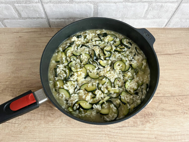 Kremowe i delikatne risotto z talarkami cukinii. To danie niemalże rozpływa się w ustach i za każdym razem wychodzi smaczne. Jeśli chcesz przygotować kremowe risotto, ale jednocześnie zachować odpowiednią twardość ziarenek ryżu, koniecznie użyj specjalnego ryżu przeznaczonego do przygotowania risotto. Sama użyłam ryżu arborio, możesz również użyć odmiany carnaroli. Chcąc zachować idealną konsystencję risotto musisz stopniowo podlewać je gorącym bulionem, najlepiej niewielkimi porcjami. Ostateczna konsystencja powinna być kremowa i przypominać gęstą zupę, nie można pozwolić by cały płyn został wchłonięty. To jedno z najpyszniejszych wegetariańskich przepisów jakie przygotowałam w ostatnim czasie i jednocześnie najprostszych.