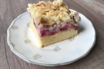 Przepyszne ciasto zwiastujące słoneczne dni. Czerwony rabarbar i truskawki pod migdałową kruszonką. Przepyszne i miękkie ciasto.