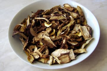 Świąteczna zupa grzybowa z suszonych borowików i podgrzybków, gotowana na bulionie z włoszczyzną. Wigilijna zupa z grzybami.