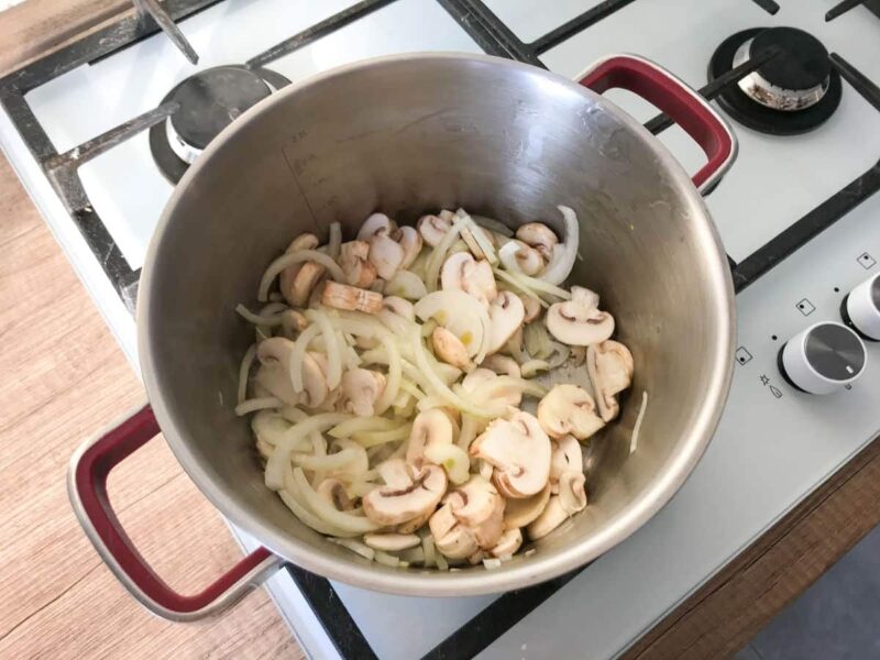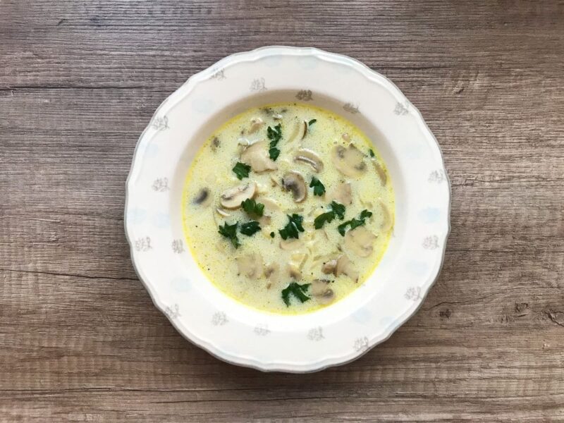 Pieczarkowa zupa gotowana na bazie swojskiego bulionu na włoszczyźnie i drobiu, zakłócona śmietanką kremówką nadającą łagodnej konsystencji. Sycąca za sprawą dodatku makaronu w postaci drobnych muszelek. Jeśli masz rosół z dnia poprzedniego, zupę pieczarkową przyrządzisz w mig. Możesz też użyć wywaru z kostki rosołowej, jeśli chcesz zyskać na czasie.